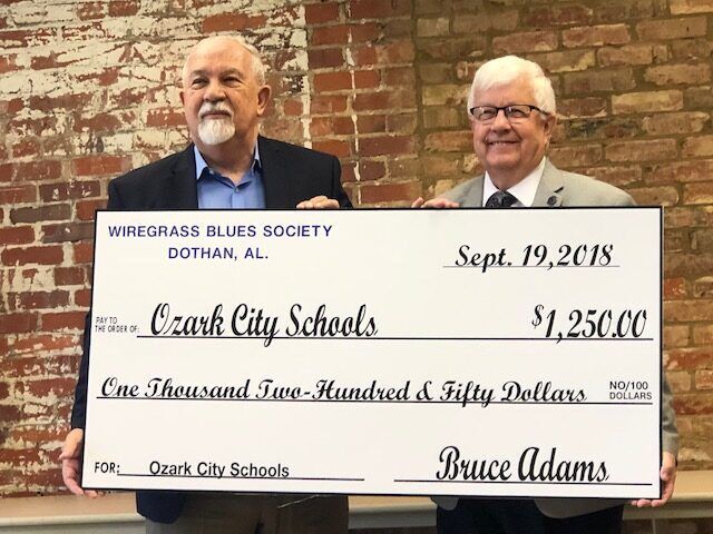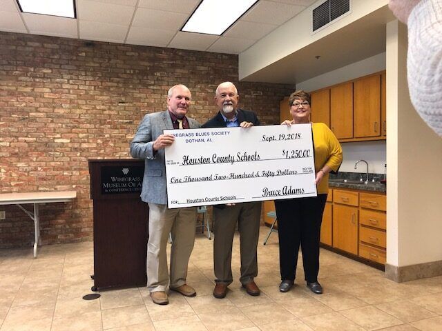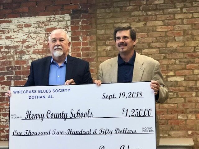 Unlike other years, the Wiregrass Blue Society presented $4,000 in support to local school systems. This money was given to support music education at these particular public school systems. The money is often given for instrumentation and music supplies. In 2018, we gave the amount of $1250 each to four different school systems i.e. Geneva County, Henry County, Houston County, and Ozark City Schools!