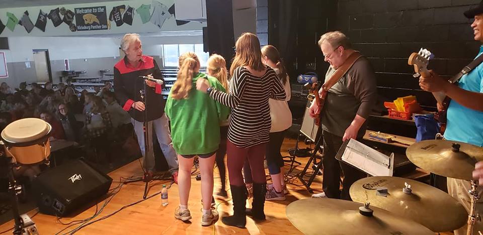 The Wiregrass Blues Society partnered with the Houston County School system to bring Blues-in-Schools programming to over 1600 K-8th grade students! We enlisted local bands that are Wiregrass Blues Society members to perform at four Houston County Schools. Sinners’ Gospel played at Ashford Elementary on February 20th. Oddly Enough played on February 27th at Rehobeth Middle School. The New Canadians played for Wicksburg Elementary on March 22nd. And, Montage performed on April 18th at Cottonwood Elementary School.